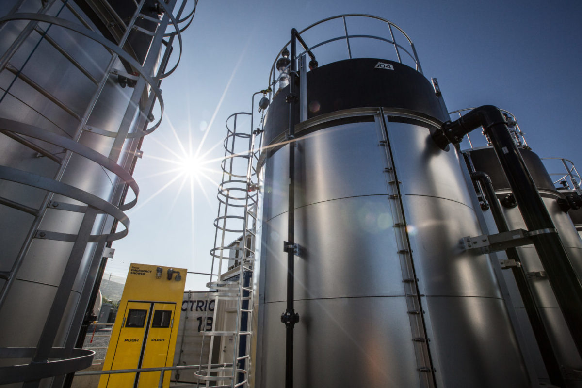 Different from more prevalent stacked lithium-ion battery cells, VRF batteries consist of tanks of liquid electrolytes and pumps that charge and discharge electrons to the grid. According to the U.S. Energy Department, VRF technology has several upsides including the potential to store MWh of power in simple designs, the ability to discharge power for up to 12 hours at a time, and the fact that VRF batteries do not present a fire hazard and use no highly reactive or toxic substances, can sit idle for long periods of time without losing storage capacity, and more.