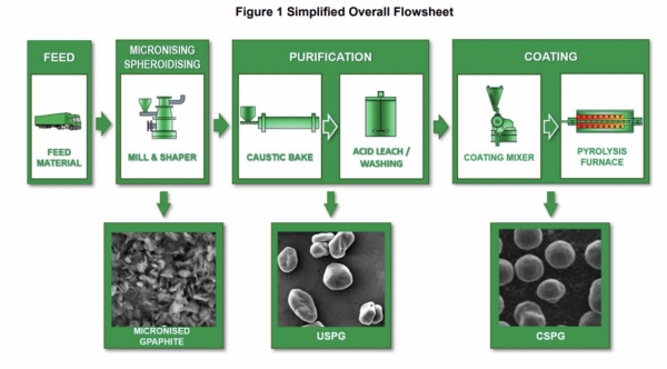 As it stands, International Graphite is proposing to build its Collie Graphite Battery Anode Material (BAM) Facility in a modular fashion so that it can be completed in stages. The current flowsheet will see the company micronising, spheroidising and chemically purifying graphite to first produce uncoated spheroidised purified graphite (USPG). This first USPG facility would then be expanded to involve carbon coating, ultimately producing coated spheroidised purified graphite (CSPG).