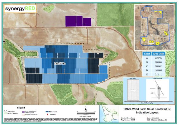 In planning documents, Synergy says co-locating wind and solar generation on the same site will enable shared use of infrastructure, such as grid connections and substations, and reduce both environmental impact and project costs.
