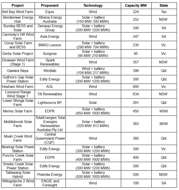 Of the 20 successful bids, one is for a solar-only project in Queensland, the 281 MW Lightsource BP Lower Wonga Solar Farm near Gympie, 174 kilometres north of Brisbane, but will include an adjacent BESS facility.