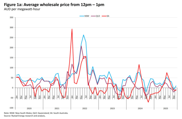 “It is worth noting that while prices are low during daytime hours, they are not consistently below zero, with the exception of South Australia,” the analysis says.