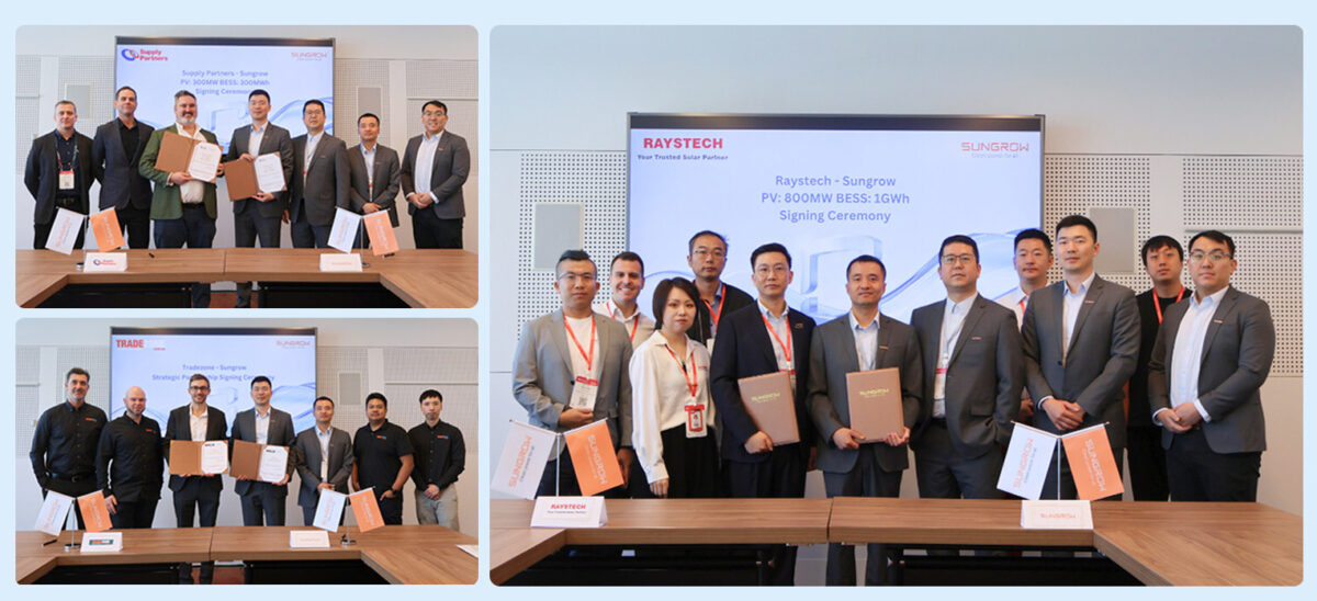 Chinese solar inverter and energy storage system provider Sungrow, which has installed 870 GW of power electronic converters worldwide, has inked agreements with Australian renewable energy distributors, Raystech Group, Supply Partners, and Tradezone during a formal signing ceremony at the 2025 All-Energy Australia exhibition in October 2025.