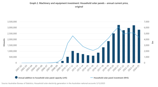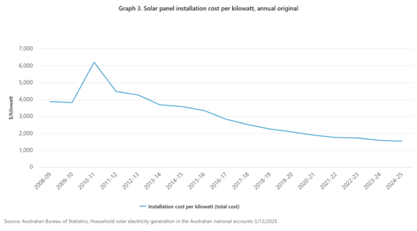 - In aggregate, in 2024-25, the household sector saved just over $3 billion or $125 per capita on electricity costs by installing rooftop solar.