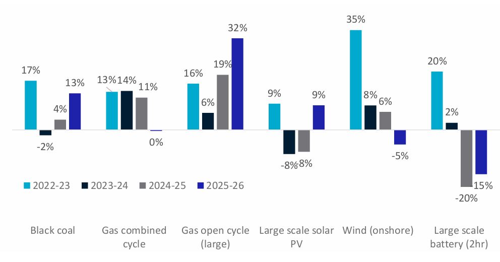 CSIRO’s projections show coal costs increase by 13% over the 2025-26 period while gas-fired generation climbs by up to 32%.