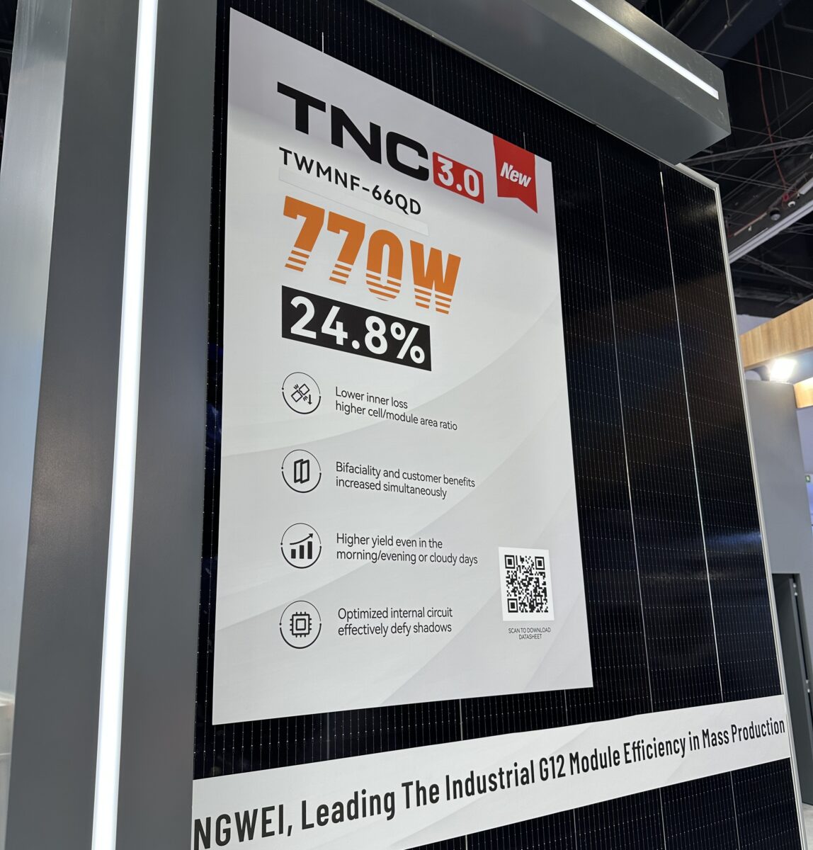 “The TNC3.0 module is the most powerful product of our TWMNF-66QD,” a company spokesperson told pv magazine. “It should be in mass production soon.”