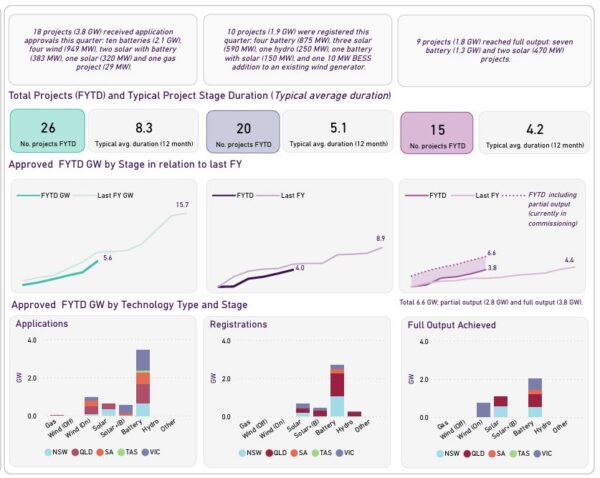 “The growth in battery storage will complement renewable generation by storing low‑cost, low‑emissions electricity during the day for release to support demand during the evening peak,” Pimentel said, adding that the December quarter demonstrated strong progress across every stage of the connections process.