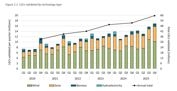 The projection stems from LGC supply exceeding demand in 2025, with 59.7 million creations, above the CER’s own 54-57 million forecast, which saw 6.8 GW of renewable energy capacity added over 2025.