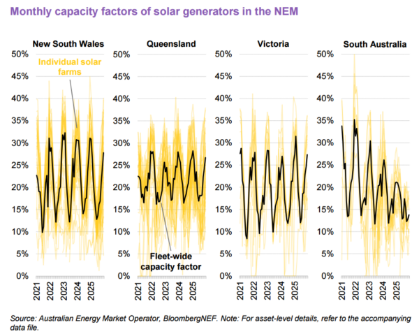 In the same period, the state’s fleet-wide capacity factor was 24.4%, down from 27.2% in Q4 2024, but slightly higher than the 23.9% NEM fleet-wide capacity recorded, down from 25.4% a year prior.