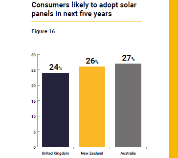 VisNet says though electricity consumption is expected to increase, so is the adoption of renewable energy, where a quarter (25%) of consumers are likely to adopt solar panels in the next five years: 27% in Australia, 26% in New Zealand and 24% in the UK.