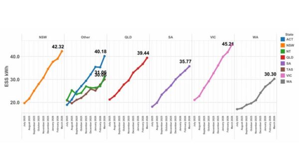 Every state posted capacity gains, with NSW the standout with more than 600 MWh of battery volume registered in March, a 44% surge of the previous month and a new state-level record.
