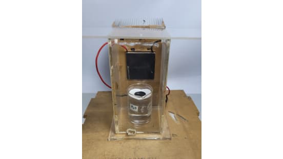 The system is housed in a clear perspex enclosure to create a controlled environment that separates evaporation from condensation.