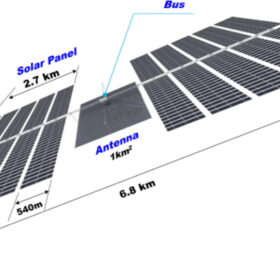 Two Korean research institutes are designing a space solar power satellite project with the aim of providing approximately 1 TWh of electricity to the Earth per year. The proposed system would use 4,000 sub-solar arrays measuring 10 metres × 270 metres and comprising thin film roll-out, with a system power efficiency of 13.5%.